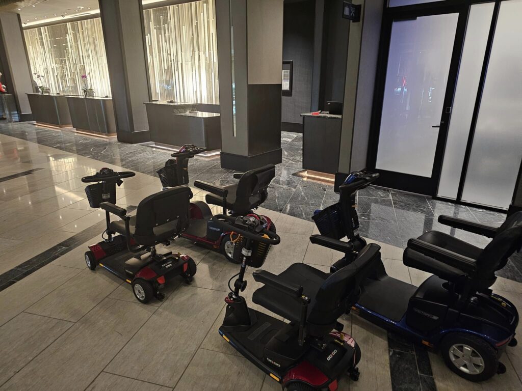 We deliver high-quality mobility scooters, wheelchairs, transport chairs, knee scooters, and rollators straight to your hotel door—no hauling equipment through airports or cramming it into a rideshare. You tell us where you’re staying, and we’ll drop it off and pick it up when you’re done, hassle-free.