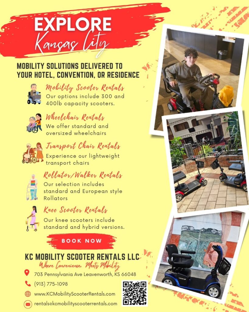 KC Mobility Scooter Rentals LLC is dedicated to partnering with conference organizers and supporting attendees throughout the Kansas City Metro with customized mobility solutions. We provide a diverse selection of high-quality, lightweight, and durable mobility scooters, wheelchairs, transport chairs, knee scooters, and rollators, delivered directly to your conference venue or hotel. Our reliable equipment enables attendees to navigate conferences with ease and confidence, ensuring a focus on engagement without mobility challenges. With our seamless delivery and pickup services, we collaborate with organizers to make conferences in Kansas City inclusive, accessible, and stress-free for all participants.